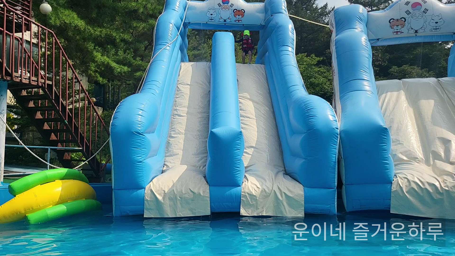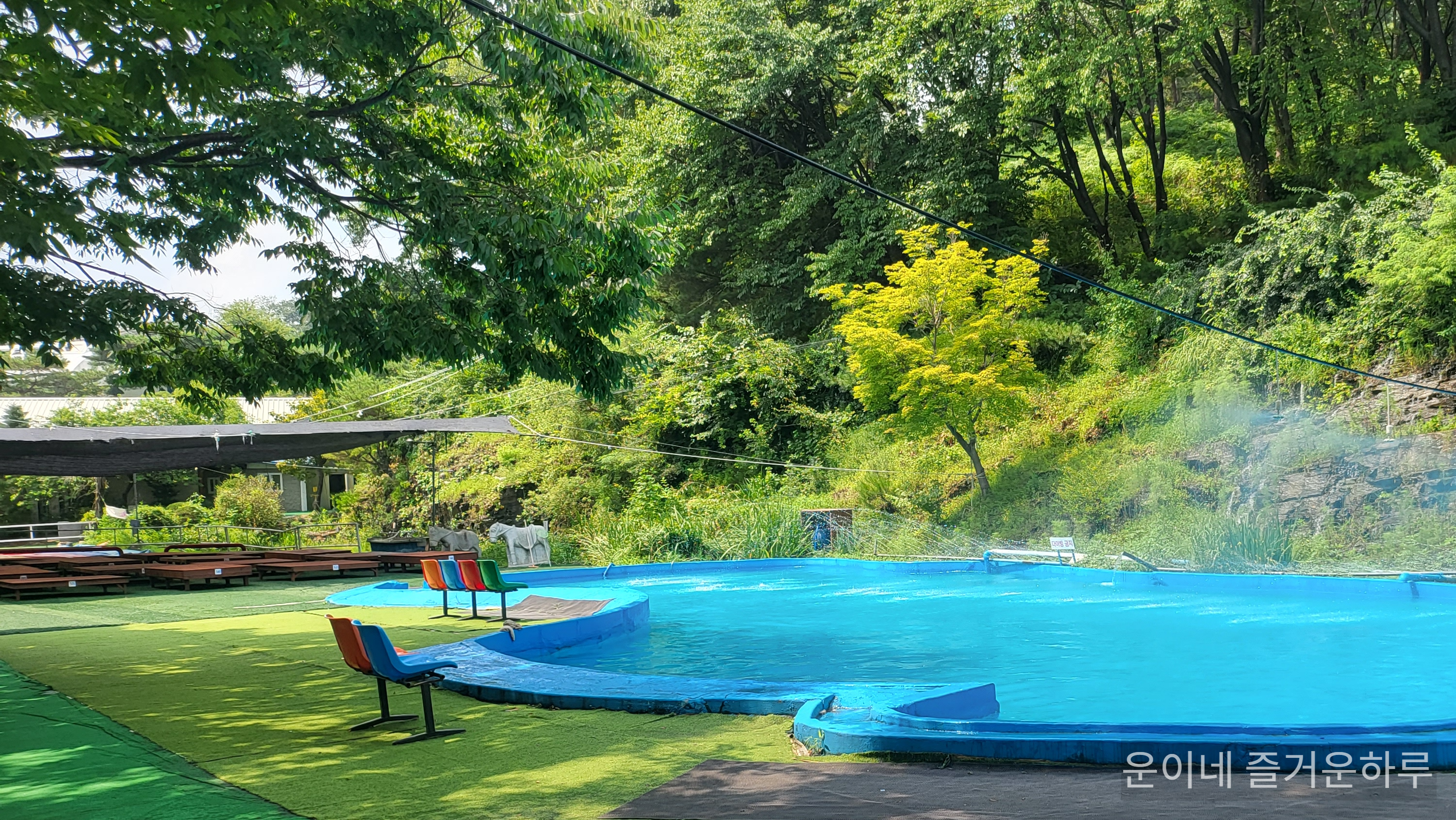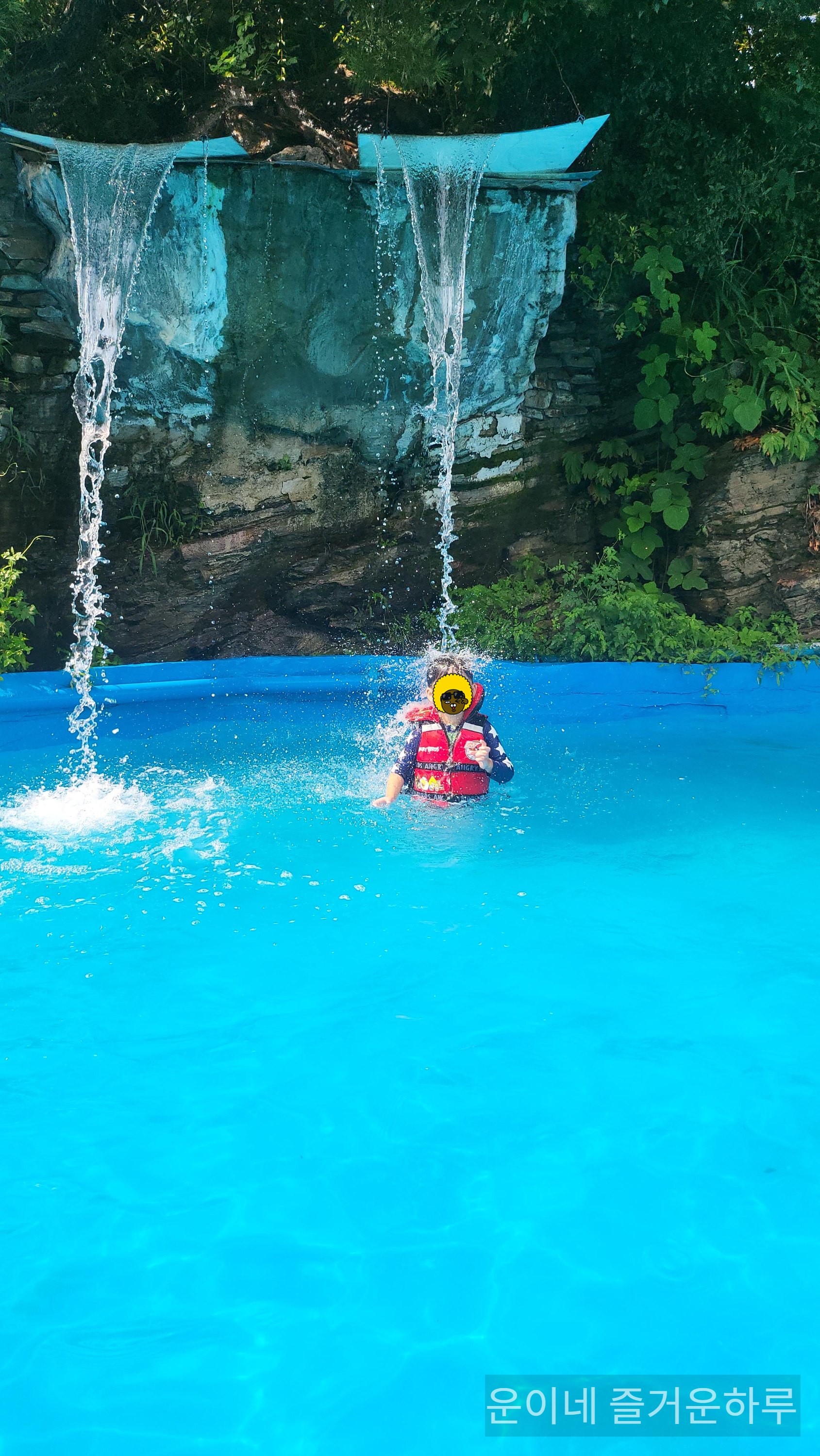 유아풀인데요. 물깊이도 깊지않아서 겁 많은 우리둘째도 아주 잘 놀았던 수영장입니다.계곡물이 나오는거라 너무 차갑지않을까 걱정했는데 차갑지않고 적당해서 놀기 아주 좋았습니다.